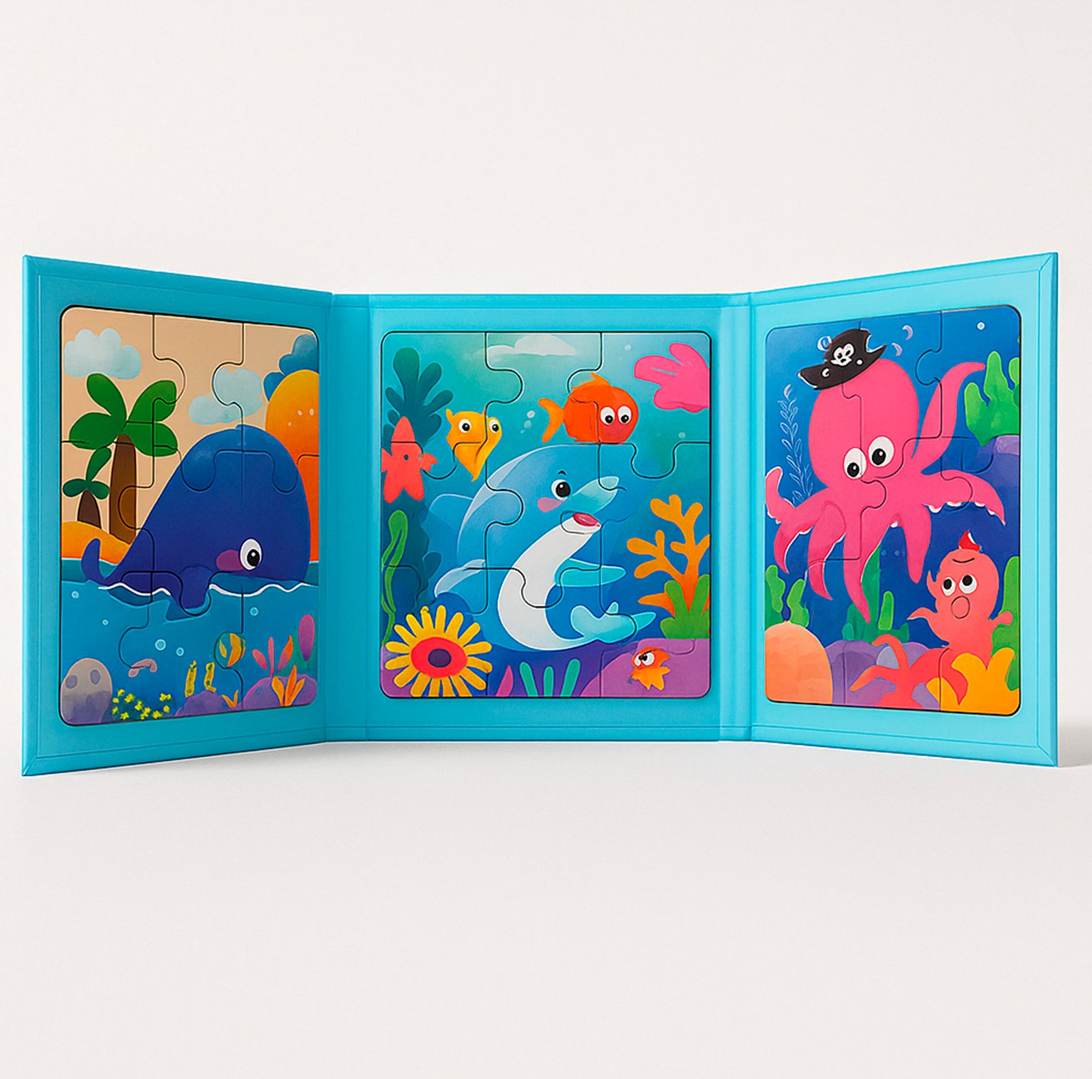 Puzzle Infantil 3 en 1 – Animales Marinos: un juego didáctico y colorido que estimula la imaginación y las habilidades motoras de los niños desde los 3 años. Perfecto para acompañar sus primeros desafíos cognitivos con diversión bajo el mar.