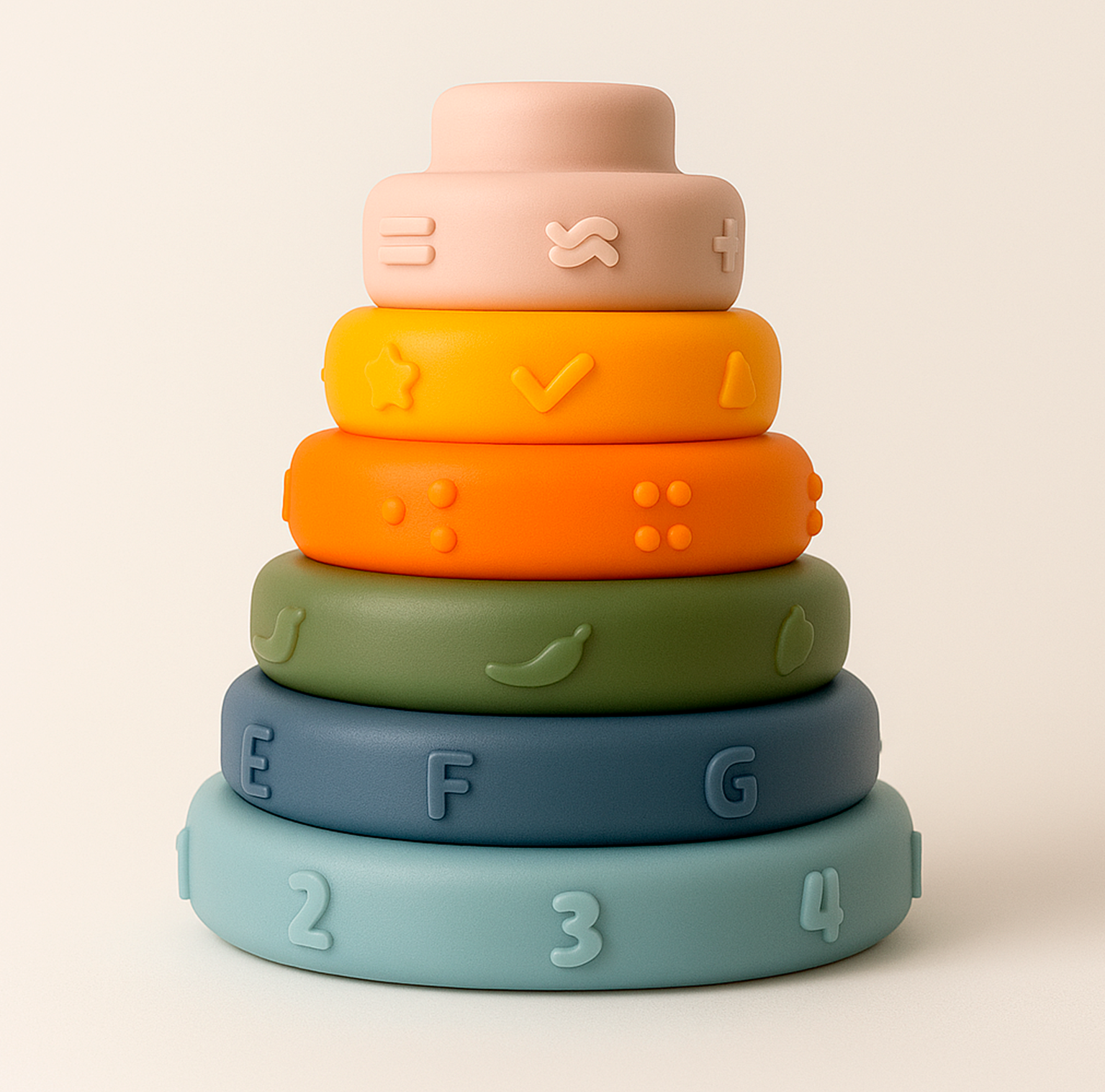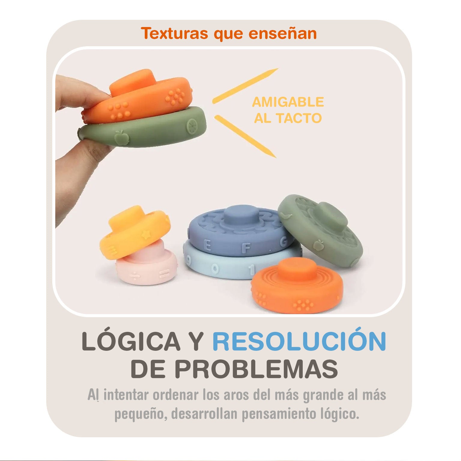 Torre Apilable de Silicona – 3D Stacking: un juguete sensorial y educativo ideal desde recién nacidos. Estimula la coordinación, el juego libre y la exploración temprana con materiales seguros y suaves para tu bebé.